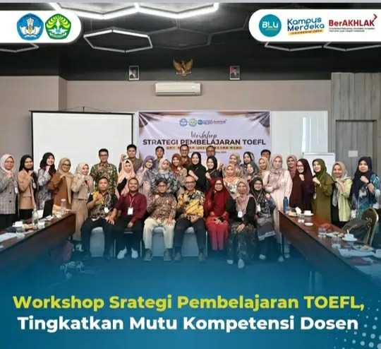 Workshop Srategi Pembelajaran TOEFL yang diikuti oleh 50 orang Dosen Luar Biasa UPT Bahasa UNRI ini menghadirkan narasumber diantaranya Direktur Lembaga TOEFL Indonesia (LTI) Pekanbaru Wahyudi SPd MPd, dan Association of Teachers of English as a foreign Languange of Indonesia (TEFLIN) Riau Kepri Maria Safriyanti MPd. (mukmin. foto: alkadris)***